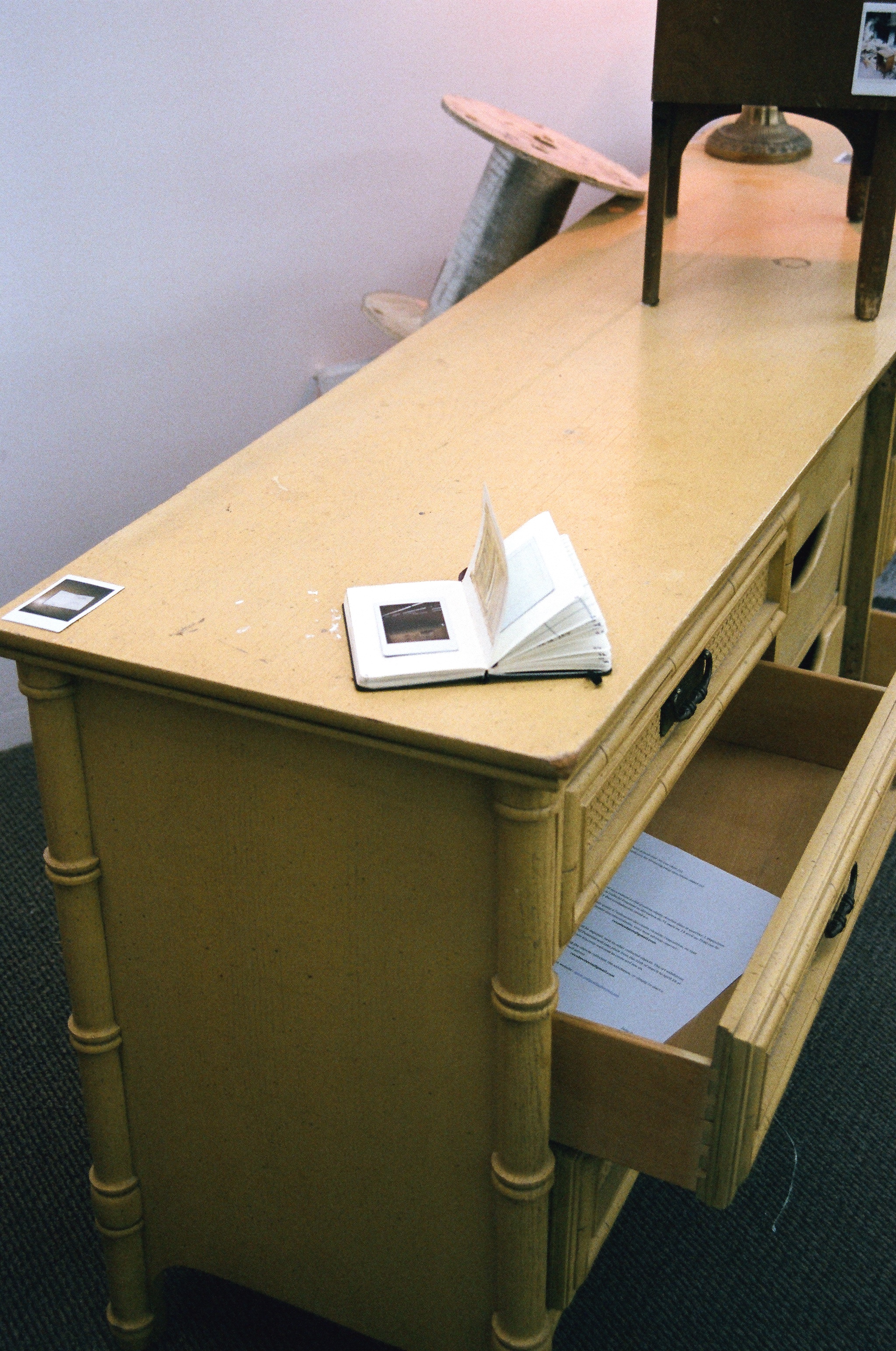 Conversation (s), 2022, Objets récoltés, carnet de terrain, photographies polaroïds,papier fait main, crayons de couleur et gouache. Dimensions variables. Crédit photographique : Annie-France Leclerc
